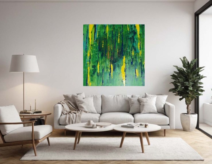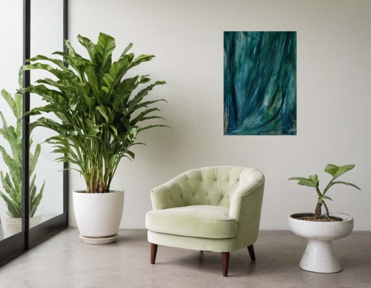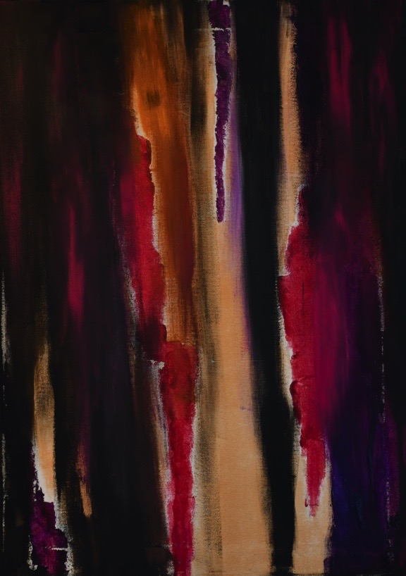 « Dans la forêt 4 » Acrylique sur toile L: 50 cm H: 70 cm P: 2 cm