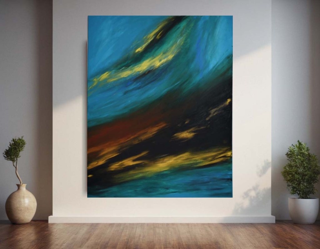 « Blue » acrylique sur toile, L: 70 cm H: 100 cm P: 2 cm