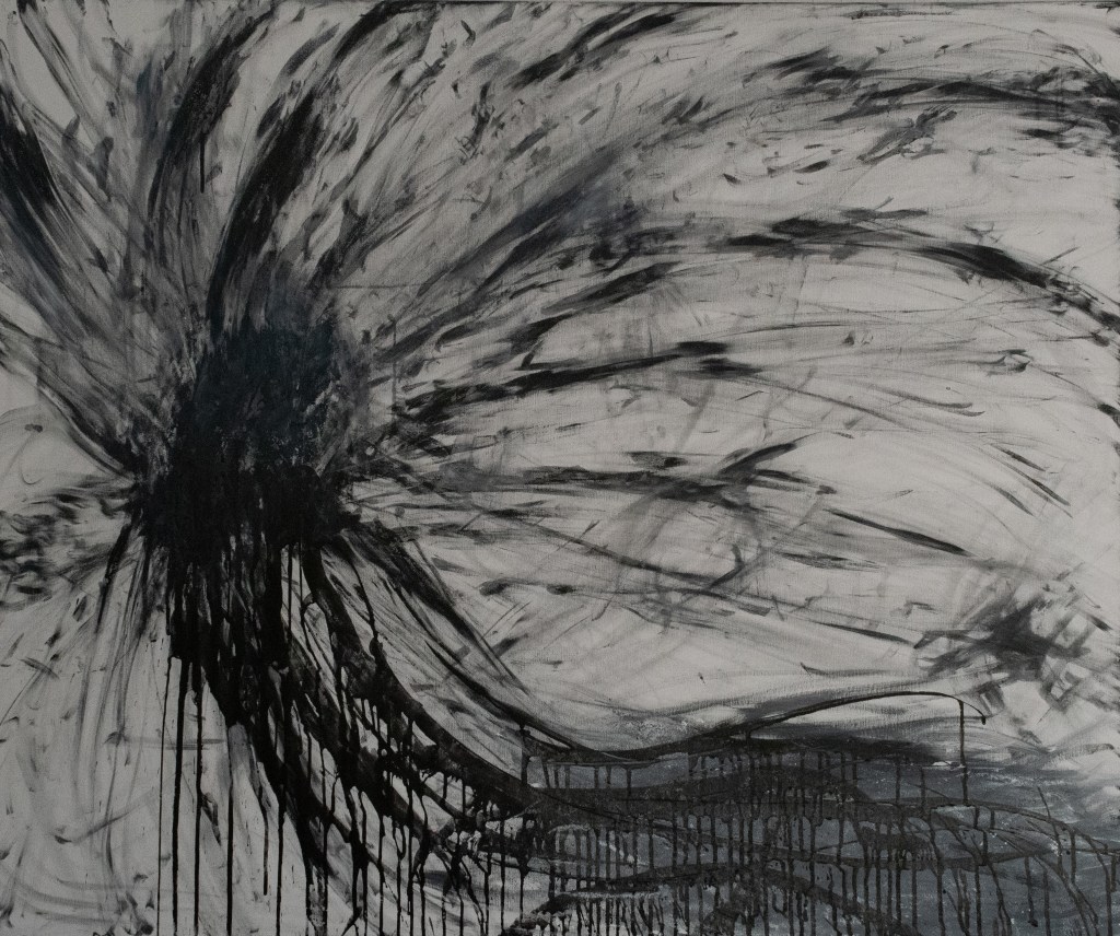 « L’envol » acrylique, encre de chine sur toile H: 80 cm L: 100 cm P: 2 cm