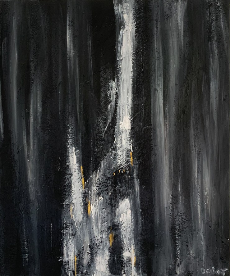 « Landscape » Acrylique sur toile H: 80cm L: 100 cm P: 2 cm » Folle nuit » Acrylique sur toile H: 100 cm L: 40 cm P: 5 cm « Maritime » Acrylique sur toile L:100 cm H: 100 cm P: 5 cm « Introspection » Acrylique sur toile H: 100 cm L: 100 cm P: 5 cm « Paysage d’hivers » huile sur toile H:46 cm L: 55 cm P: 2cm « noir -argent 1 » Acrylique sur toile H: 40 cm L: 40 cm P: 5 cm « noir argent 2 » acrylique sur toile H: 40 cm L: 40 cm P: 5 cm