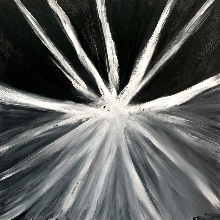 « Vers la lumière » huile sur toile H50xL50xP2cm
