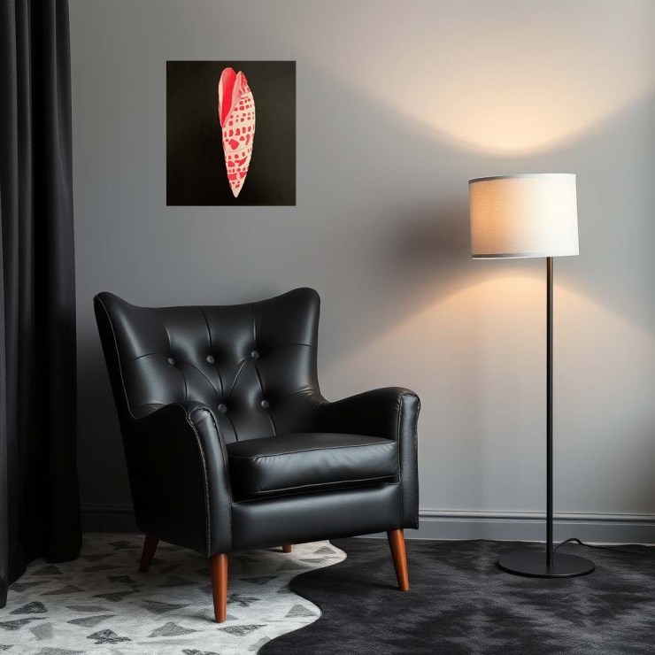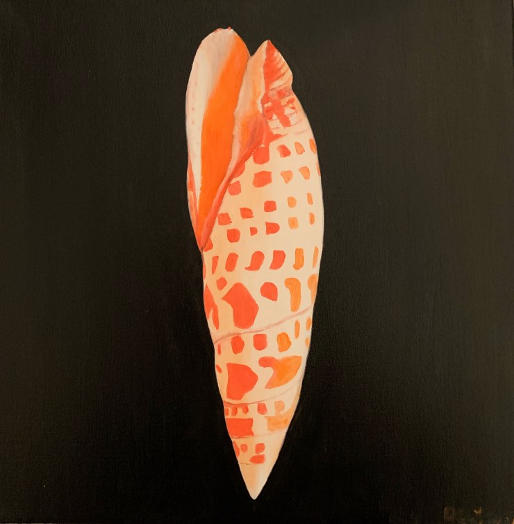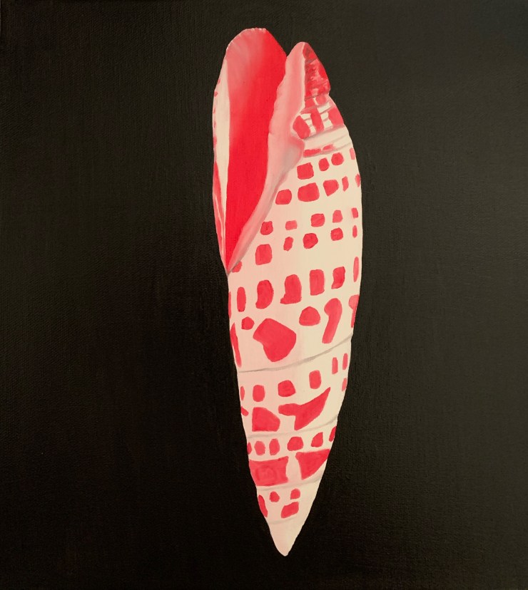 « Coquillage rouge » Huile sur toile H30 x L30 x P2 cm