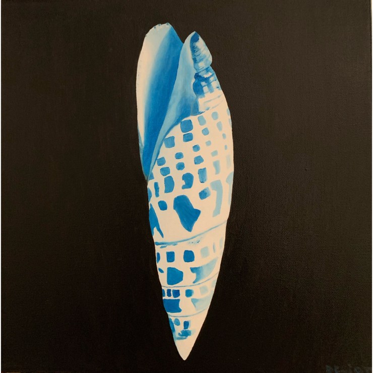 « Coquillage indigo » huile sur toile H:30 cm L: 30 cm P: 2cm