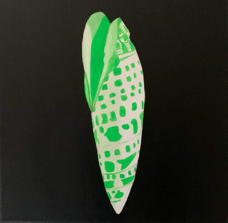 « Coquillage vert » huile sur toile L30 x H30 x P2 cm